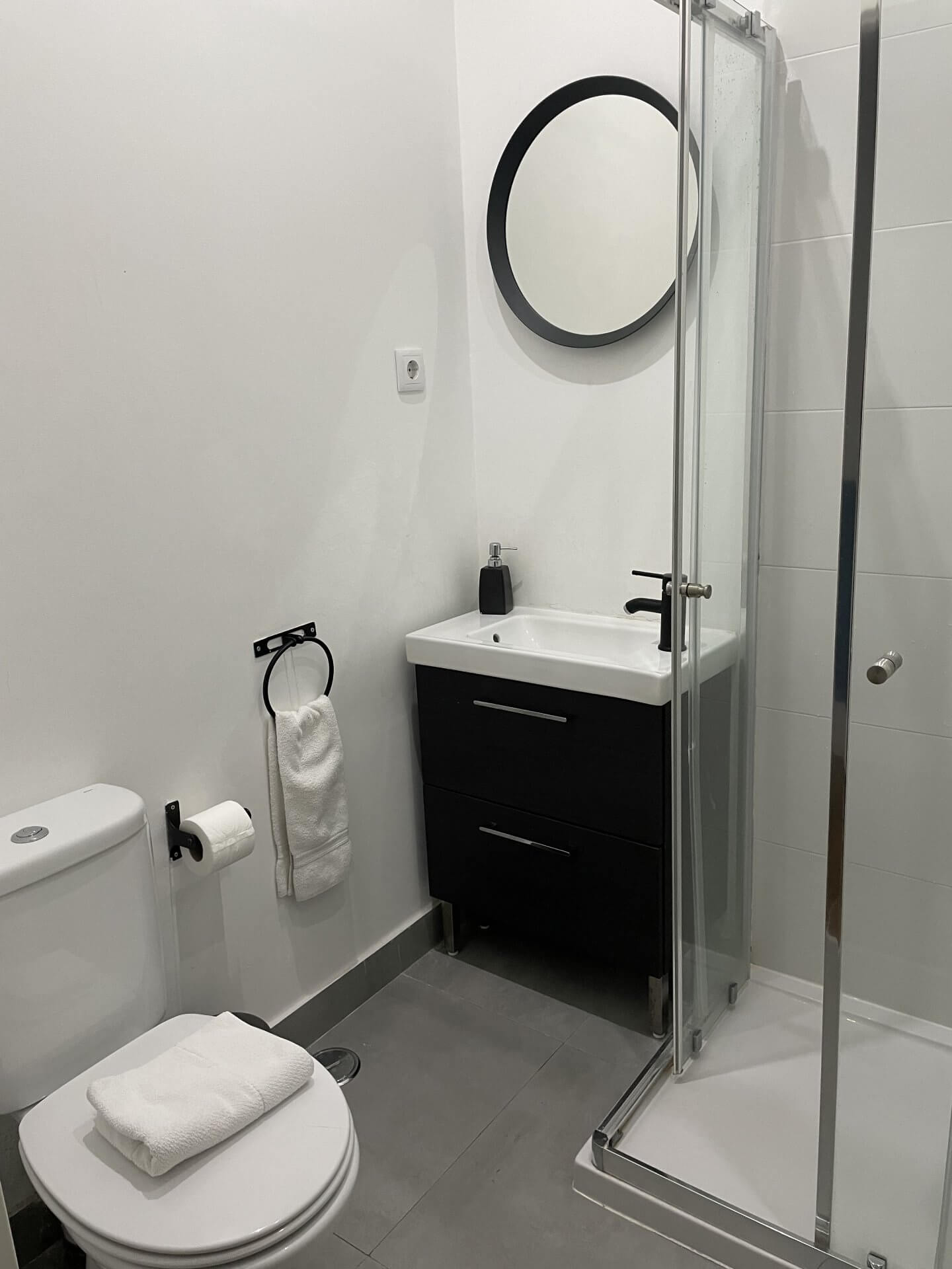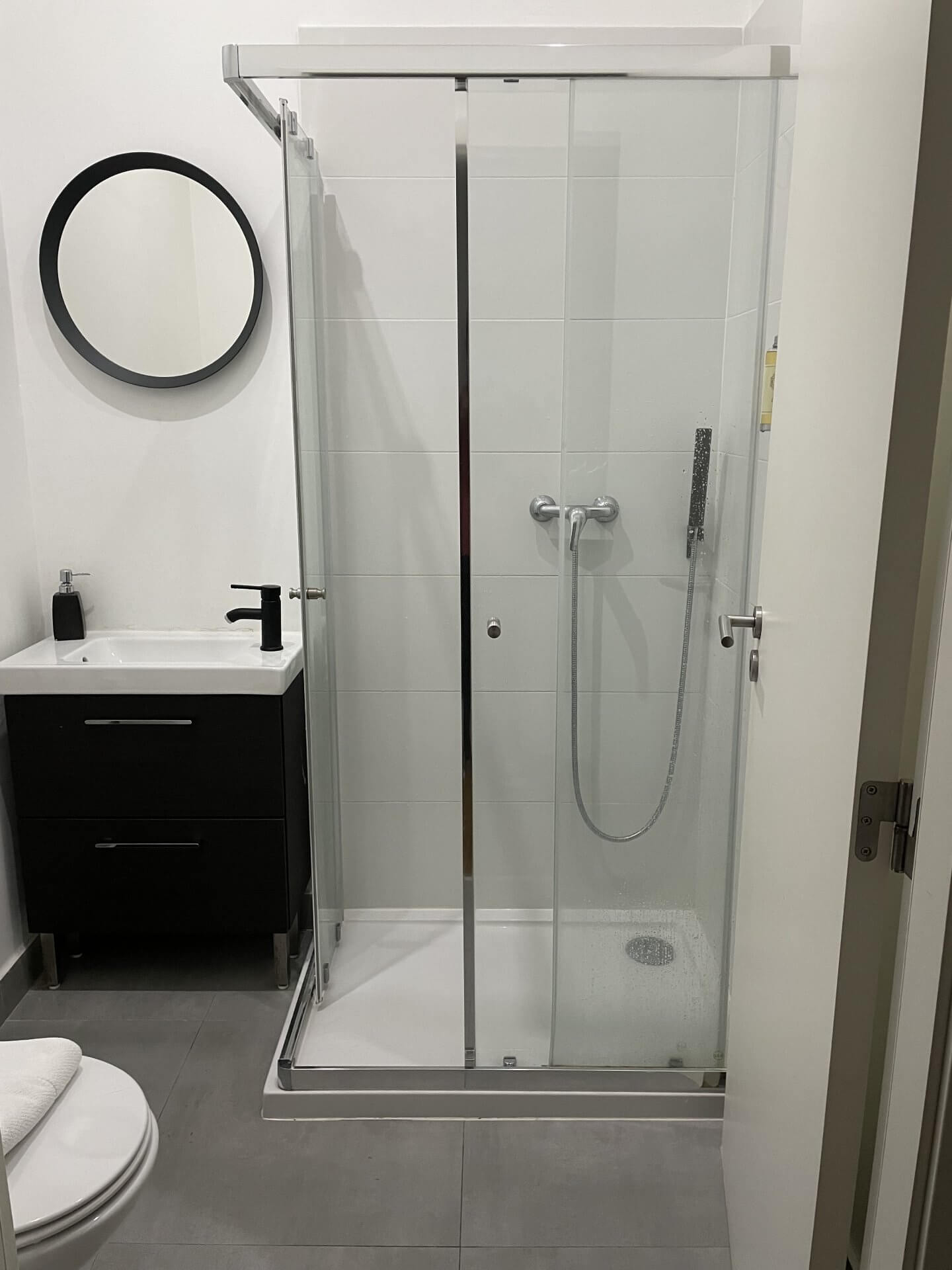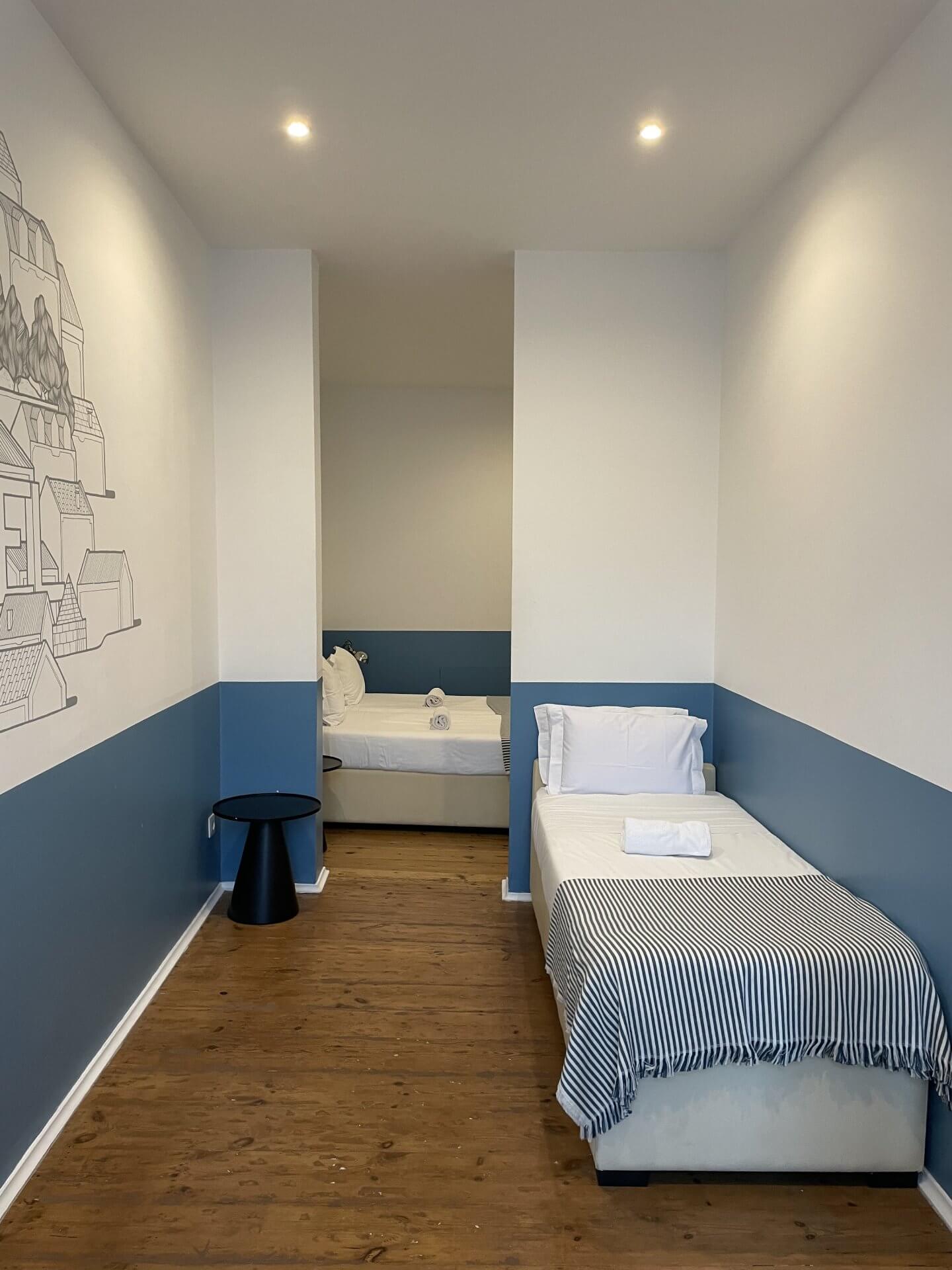 Quarto de 22m² com vista para o Largo. Dispõe de Ar Condicionado, Televisão com canais nacionais e internacionais e Wi-Fi grátis em toda a Guesthouse. A casa de banho privada está equipada com um secador de cabelo, gel de banho, shampoo e sabonete.